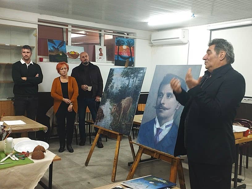 – Според успешноста на портретите, всушност најуспешниот дел на неговото профано сликарство, неговиот стил се смета за почетокот на академски реализам, но поточно е да се каже фотографски реализам. Како наивен веризам, односно битов реализам со елементи на наивност и романтичност, се толкуваат делата со фигуративни композиции со фолклорни и историски теми, каде иако не е најуспешно совладана анатомијата на цела фигура, се сметаат за први од овој вид кај нас – им раскажа Таневски на средношколците.