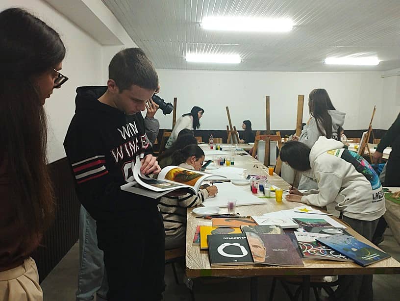 Вработени во галеријата пред група ученици држеа предавање за животот и творештвото на некој од големите претставници на македонската модерна уметност чии дела се дел од колекцијата на Националната галерија