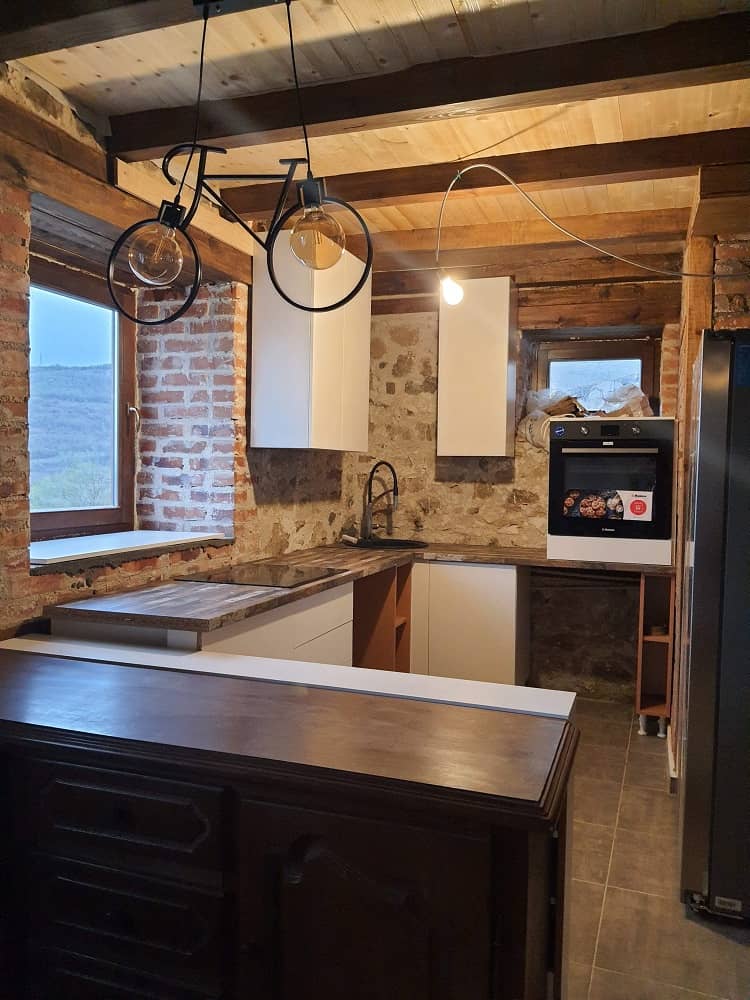 По една година започнавме врска, а сега, после 7 години заедно живееме на планина, во куќа изработена од природни материјали, во којашто нормално дрвото е најзастапено.