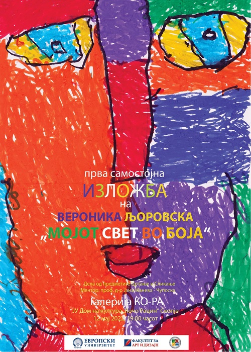 – Европскиот универзитет го негува духот на помагање на оваа категорија на лица овозможувајќи им студии со финансиска поддршка, во форма на целосна стипендија во времетраење од четири години. Таков е и случајот со студентката Вероника Љоровска, која е стипендист на Факултетот за арт и дизајн на насоката графички дизајн. Како најзначаен педагошки елемент во овој процес на создавање на оваа изложба е фактот дека Вероника успеа целосно самостојно да ги извршува задачите, работејќи по адаптирана програма креирана според нејзините можности. Целта на ваквата програма е таа да стекне вештини кои би можела да ги практикува и по завршувањето на нејзините студии – велат од Универзитетот.