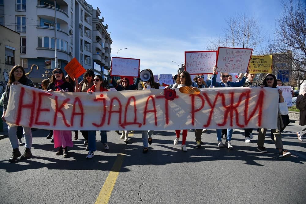 Слобода од силеџиство, Во овој систем сите „грешки“ се намерни, Ручеку направи се сам оти останаа гладни, Чирибу-чириба, еднаквоста е едноставна, И девојките се суперхерои, Нека јадат ружи… Ова се само дел од транспарентите на вчерашниот протест по п0вод Меѓународниот ден на жената, 8. Март.