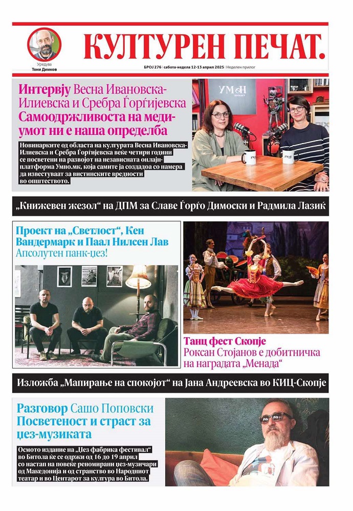 Во пресрет на четвртиот роденден на Умно.мк, новинарот Тони Димков не штедеше простор во викенд-изданието на „Културен печат“ кое излегува во дневниот весник „Слободен печат“ за да ја раскажеме приказната на Умно.мк. Димков е паталец кој повеќе од 30 години работи на полето на културата и секој ден на своја кожа чувствува колкава е посветеноста да се работи како новинар во областа култура, која е темел на секое цивилизирано опчштество, најчесто непрепознаена од креаторите на политики и бизнис-секторот. Голема благодарност за колегата Димков и неговата поддршка. Купете „Слободен печат“, еден од последните бастиони на македонското печатено новинарство, читајте ја нашата и останатите приказни.