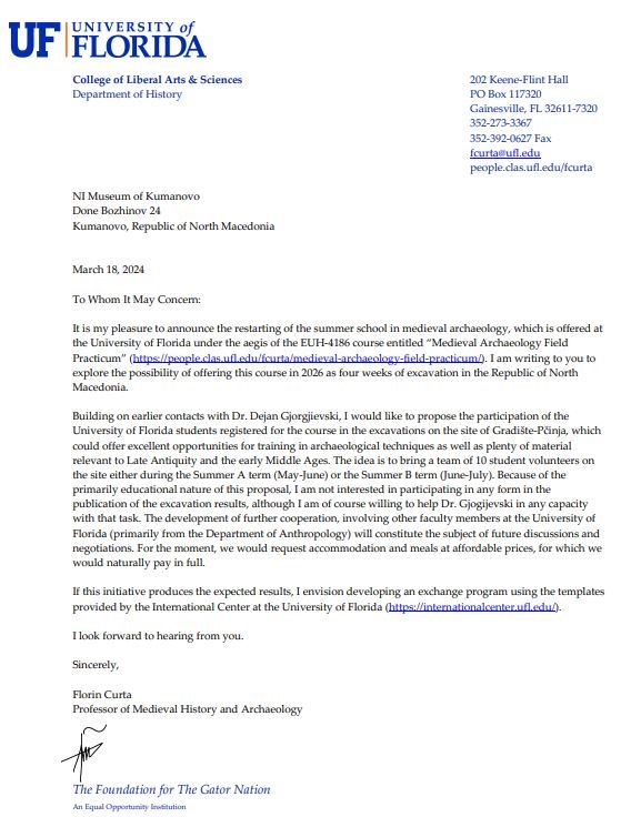 Реномираниот Универзитет „Флорида“ од Мајами, САД сака да организирање археолошки камп на локалитетот Градиште во Бислимска Клисура, кај селото Пчиња. Понудата деновиве стигнала до Музејот во Куманово. Интересот на американскиот тим е резултат на соработката на проф. Флорин Курта со претставници од кумановскиот Музеј и на неговите предзнаења на овој локалитет кој е специфичен и важен по многу работи.