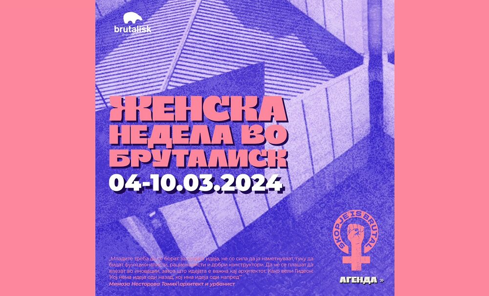 Промоции на книги, работилници, стендап, музички и хуманитарни настани ќе се одржуваат неделава во „Бруталиск“ во центарот на Скопје. Со шест настани за возрасни и еден за деца, тематската недела е посветена на жените.